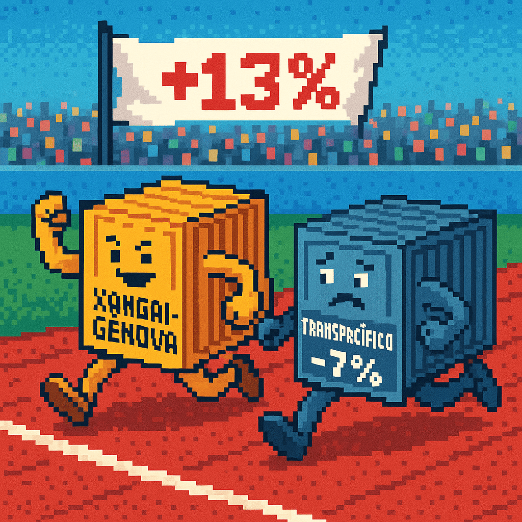 Na rota Xangai-Gênova, as taxas registraram um aumento de dois dígitos, subindo 13% para US$ 3.004 por contêiner de 40 pés, enquanto as taxas de Xangai para Roterdã subiram 5%, para US$ 2.361.