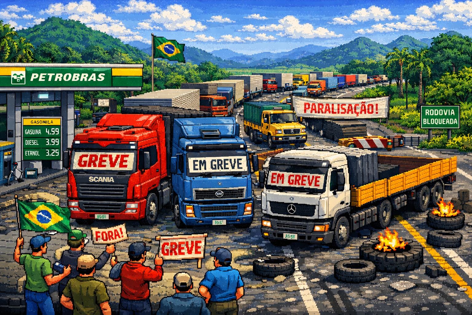 Lideranças dos caminhoneiros se reuniram nesta quarta-feira (18), em Santos (SP), para decidir se aderem a uma greve nacional. O estopim da crise é a disparada no preço do diesel, que subiu cerca de 19% desde o fim de fevereiro, reflexo do conflito entre EUA, Israel e Irã, que fechou o Estreito de Ormuz e fez o barril de petróleo tipo Brent saltar de US$ 72 para US$ 103.